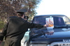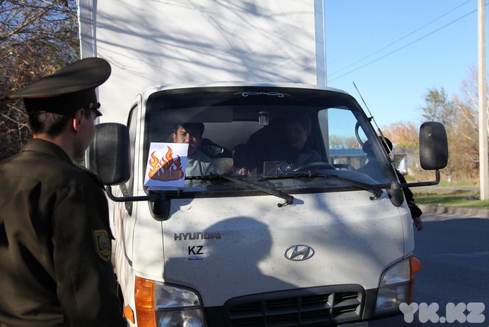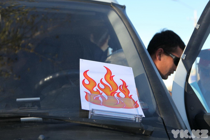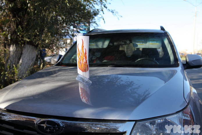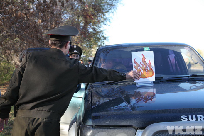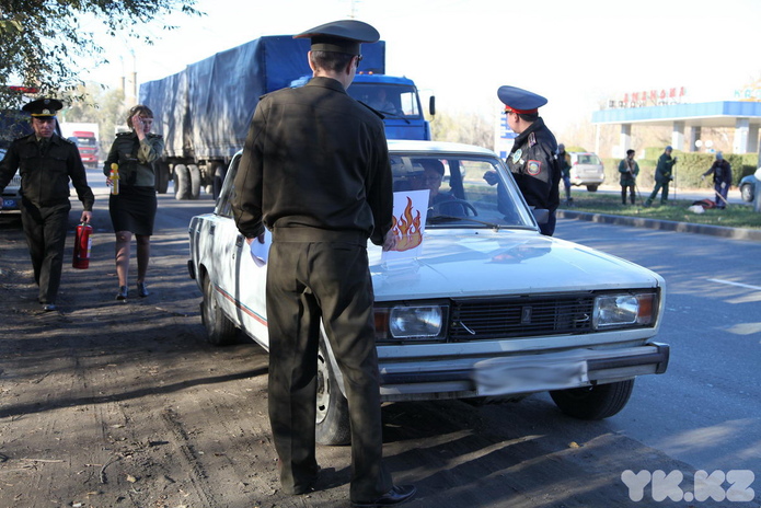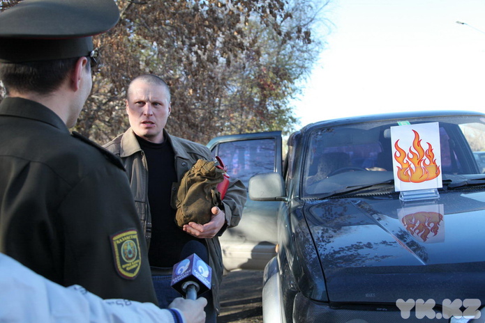Сотрудник дорожной полиции останавливал первую попавшуюся машину, а представители службы ЧС ставили на капот подставку с нарисованным огнем и сообщали:
