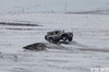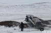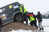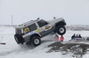 Не обошлось без небольших происшествий: одна из легковых машин застряла в сугробе, джип днищем зацепил вершину горки и там и остался, пока его не вытолкнули другие участники.
