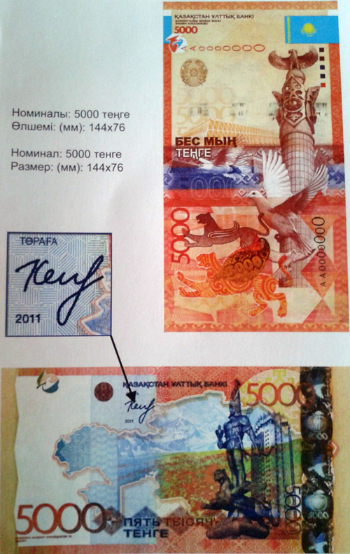 Ранее в различных казахстанских СМИ появились сведения о том, что подпись Кайрата Келимбетова была нанесена на купюры 2011 года выпуска. Однако в Нацбанке опровергли эту информацию.