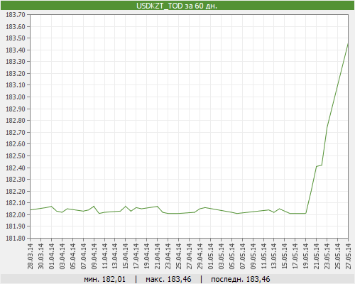 Согласно результатам вечерних торгов, по новому курсу уже произошли сделки с американской валютой. В операциях участвовали 12 членов валютного рынка KASE. Торги проходили в 17.00 по времени Астаны. Еще только неделю назад, 19 мая, доллар стоил 182,01 тенге (утрення сессия KASE).