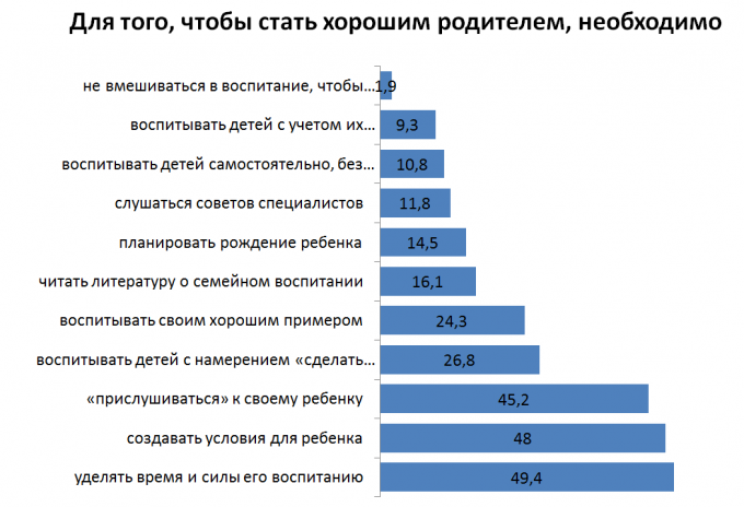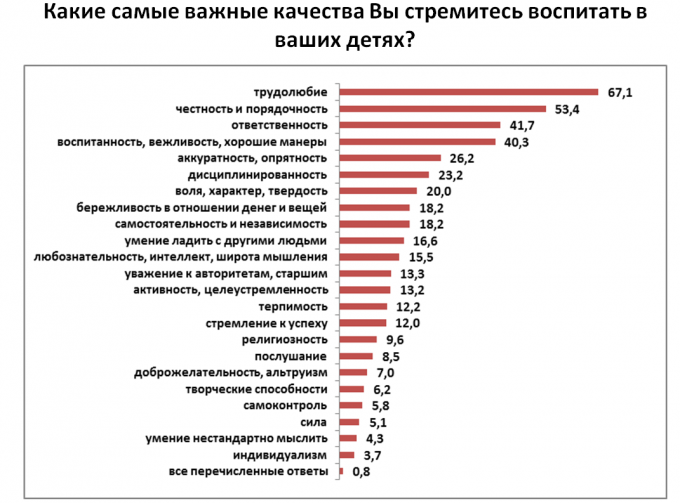 На вопрос – чья роль наиболее важна в воспитании детей, 83,1% сказали, что обоих родителей, 21,7% считают, что это старшие родственники, матери и отца – 11,4 и 11,7% соответственно.