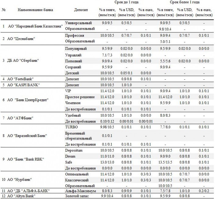 "Между тем в секторе сохраняется высокая динамика изменения вкладов между банками при сохранении совокупного объема депозитов примерно на одном уровне. В этой связи последние изменения по дифференциации предельных ставок по тенговым депозитам (с 1 октября этого года), с одной стороны, расширят выбор размещения сбережений, а с другой - будут способствовать к сдвигу предпочтений в сторону долгосрочных депозитов за счет увеличения разницы между максимальными ставками по вкладам (±3,0 процента). Тем самым в структуре пассивов банков будет постепенно формироваться более "длинное" и устойчивое фондирование, что увеличит потенциал кредитования экономики", - говорится в сообщении Ассоциации финансистов Казахстана.