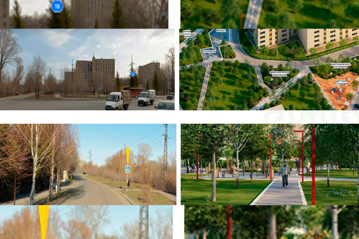 На эскизах, которые были представлены во время встречи, видно, что в планах – разнообразное озеленение с чистыми ухоженными газонами, тренажёрная и детская площадки, воркаут, тропинки с освещением. Размещать их будут на территории перед многоэтажными домами малосемейного типа, рядом с автобусной остановкой и мостиком через Комендантку.