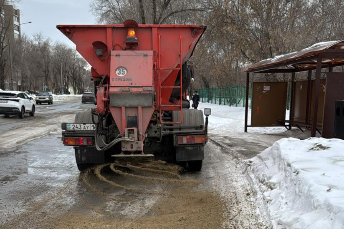 Дороги Усть-Каменогорска подсыпают песком