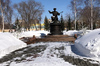 В парках в центре Усть-Каменогорска нет никакого снежного коллапса. За оградой «Жастара» тротуар стал одним большим сугробом и тропинку в нём протоптали пешеходы, а внутри дорожки вычищены практически до асфальта. Тщательно расчищены не только аллеи, но и скамейки, и скульптурные композиции.