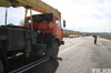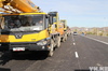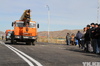 Первыми по свежеуложенному асфальту проехали ретромашины, следом - техника, принимавшая участие в строительстве.