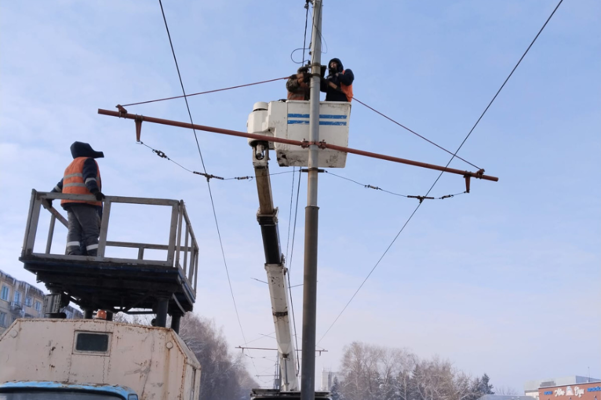 После 17:30 возобновилось движение трамваев по маршруту №3 (от УК вокзала до Защиты). Вагоны стояли полдня, пока ремонтная бригада устраняла провисание кронштейнов в нескольких местах по проспекту Шакарима. Ремонт осложнялся тем что его вели на морозе и на большой высоте.