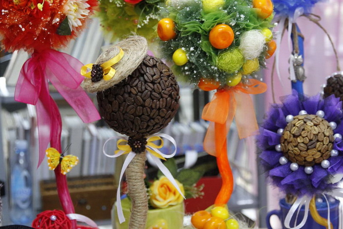 Интересовались покупатели и всевозможными волшебными деревьями – цветочными, долларовыми, кофейными, бисерными, и лоскутными одеялами, и поделками из бересты, и знаменитыми куклами-тильдами, и украшениями. А ещё – тем, как можно подобную красоту научиться делать самим. Специально для таких гостей мастера и мастерицы проводили мастер-классы.