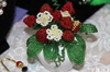 Анжела Киселёва и Юлия Токарева, художницы-декораторы, распродали почти все украшения из полимерной глины – заколки и броши с нежными букетами сирени, незабудок, анютиных глазок, орхидей. Надеются, что в следующий раз найдутся покупатели и на авторский стул с бархатной обшивкой: - Мы вручную разрисовали его фруктами и назвали гранатовым, - говорят девушки. - /Когда нашли, он был обшарпанный и без сиденья, но ножки крепкие, а спинка удобная, зачем добру пропадать.