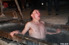 На озере были сделаны две купели с деревянными поручнями и дном. Рядом дежурили полиция и спасатели, которые помогали всем выбраться из воды после погружения.