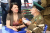 Каждая организация из числа силовых и государственных структур, общественные объединения, вузы и колледжи, общественные организации и простые горожане весь день несут к Вечному огню цветы – от огромных корзин, которых уже собралось несколько десятков, от гирлянды их хвойных веток, в которую вплетен красные гвоздики, до тюльпанов и ландышей, покрывающих пьедестал мемориала Славы сплошным ковром.