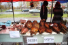 Кроме рыбы на ярмарке были медовые ряды, а также грузовики с овощами, которыми торговали оптом: картофель, лук и морковка по 45 тенге.
