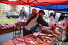 Несмотря на дождь, в 9 часов на рядах уже стояли очереди. Больше всего к цистерне с живым сазаном с Бухтарминского водохранилища. Его продавали по 600 тенге за килограмм, а рядом на прилавке такого же, но уже не бьющего хвостом, за 400.