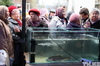 Ажиотаж вызвала и живая форель. Аквариум с ней опустел сразу же, как только был наполнен, хотя продавали ее по той же цене, что и во всех торговых точках этого производителя, где также установлены аквариумы - по 1580 тенге.