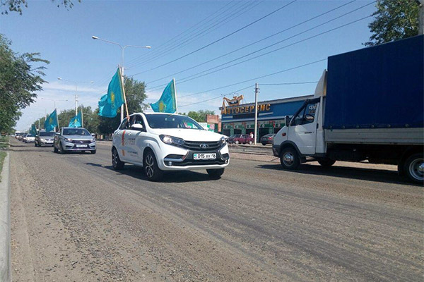 Утром колонна отечественных машин «Бипэк Авто Казахстан» с 25-ю Государственными флагами прошла по следующему маршруту: проспект Независимости, улица Протозанова, Набережная им.Славского, проспект Сатпаева, проспект Карла Маркса, улицам Казахстан, Сатпаева, Мызы, Ворошилова, проспекту Абая.