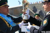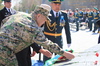 У мемориала Славы в Усть-Каменогорске эстафету нашим пограничникам передали пограничники Алтайского края РФ. Главный символ эстафеты – Кубок Победы, который начал свой маршрут 1 февраля в Бресте. За это время он побывал во Владивостоке, Мурманске, прошел многие тысячи километров до границы с Казахстаном.
