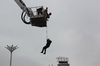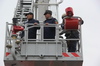 Зрители также смогли посмотреть на работу пожарного коленчатого автомобиля-подъёмника с лестницей, который предназначен для доставки к месту проведения спасательных работ. Высота подъёмной люльки может достигать до 32 метров, а максимальная грузоподъёмность до 4 человек.