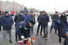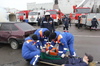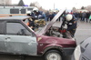 Пока пострадавшего госпитализировали сотрудники Центра медицины катастроф, в это время в автомобиле, происходит возгорание. Спасатели постарались детали происшествия приблизить к реальным действиям. Дети и случайные прохожие стали свидетелями дыма и условного тушения огня.