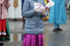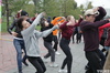 Из-за резкого похолодания и снегопада желающих погулять на площади было немного. Тем не менее, все развлекательные площадки работали.