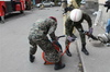 На место ЧС прибывает служба общественного порядка и организовывает оцепление жилого дома. За ними прибывают спасательные и противопожарные подразделения. Они сообщают дежурным службам «112» и «138», что образовался завал у подъезда жилого дома, препятствующий проезду техники. Сотрудники кинологической службы Специализированного отряда ДЧС ВКО проводят работы по поиску пострадавших во дворе. Техника службы дорог и мостов предприятия «Оскемен Тартип» расчищает завал у подъезда. Прибывшие на место пожарные расчеты приступают к тушению пожара, а с балкона пятого этажа при помощи автолестницы эвакуируют жителей. Одновременно психологи Центра медицины катастроф оказывают психологическую помощь жителям, а специалисты службы энергетики проводят работы по обесточиванию жилого дома от подстанции №8-2. Спасатели деблокируют двери лифта, эвакуируют жителей в безопасную зону. Пострадавший, оставшийся на лестнице второго этажа под завалом, получил тяжелую травму позвоночника, спасатели извлекают его с помощью специального оборудования и передают врачам Центра медицины катастроф. После проведения спасательных работ пострадавшим оказана первая медицинская помощь и организована транспортировка во Вторую городскую больницу.