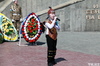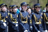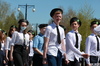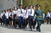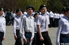 У Мемориала Славы собрались юнармейские отряды школ города для проведения строевого смотра. Вначале школьники посмотрели прямую трансляцию парада с участием президента Республики Казахстан в Атбасаре и небольшой концерт, а также почтили минутой молчания воинов, павших на полях сражений в Великой Отечественной войне.
