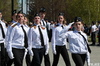 После состоялся сам строевой смотр. Комиссия оценивала умение юнармейцев пройти строем и исполнение строевой песни. С задачей справились практически все, а самые лучшие были награждены почетными грамотами.