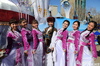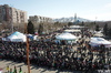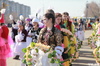 В 11.00 началось праздничное представление. Кадыр-ата прочитал молитву о благоденствии и обновлении, а женщины и девушки исполнили обряд шашу.