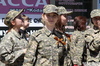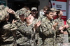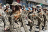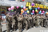Ученики центра для одаренных детей «Восток» в военной форме, под строевые песни прошлись по улице Виноградова.