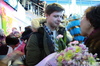 Парня буквально завалили цветами, девочки брали автографы и обязательно хотели сфотографироваться с героем.