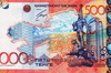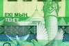А вот претендент от Республики Казахстан на звание банкноты года в 2013. На ней силуэт страны на фоне вида реки Иртыш. Голографическая полоса вдоль правой стороны содержит стилизованные изображения юрт. На обратной стороне вновь голуби на фоне памятника и антилопы.