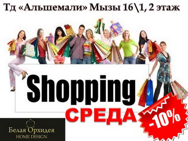 Наш филиал в ТД «Альшемали» ждет вас на шоппинг-среду. Каждую среду скидка на весь ассортимент - 10%.