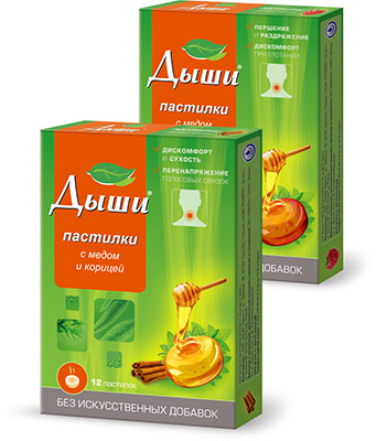 При боли в горле обычно назначают дезинфицирующие лекарственные средства, а также полоскания травяными настоями. Их действие усилят пастилки Дыши с медом и корицей или малиной. Пастилки Дыши помогают справиться с дискомфортом в горле, способствуют выведению мокроты и быстрому восстановлению слизистой горла после кашля. Пастилки изготовлены только из натуральных компонентов, имеют приятный вкус.