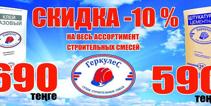 Сухие строительные смеси «Геркулес» позволят достичь качественного результата в строительстве, ремонте, а также реставрации и модернизации зданий. Завод реализует строительные клеи, смеси самой разнообразной гаммы, штукатурные смеси, шпатлевки, цементные смеси, наливные полы. Применение современных технологий с использованием полимеров позволили повысить качество производимых материалов: