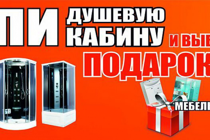 - при покупке душевой кабины - подарок на 40% от стоимости.