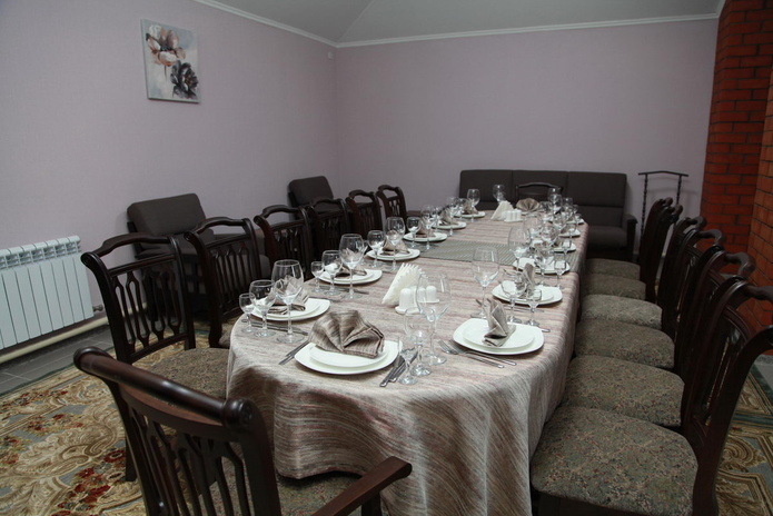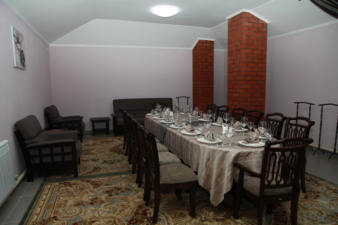 На втором этаже расположен уютный банкетный зал, вместимостью до 160 человек. Здесь вы можете отметить любое событие, будь то либо свадьба, юбилей, корпоратив – для вас постараются организовать достойный праздник. В банкетном зале вы также можете заказать караоке.