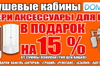 Покупай душевые кабины и на 15 % выбирай кафель в подарок!