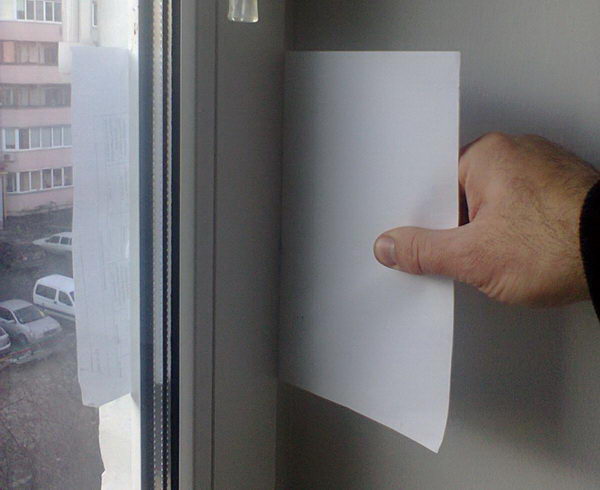 Закройте створку окна и попытайтесь просунуть листик бумаги под уплотнитель – как показано на рисунке. Если листик проходит, то необходимо обратиться в ремонт, чтобы вам отрегулировали прижим, и продувание исчезнет. Как правило, такая услуга стоит около 2500тг.