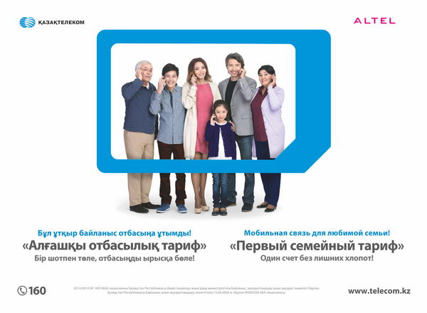 «Семейное решение» - новинка на рынке телекоммуникаций, которая объединила мобильную и фиксированную связь. Теперь абоненты Казахтелеком, имеющие городские номера телефонов, подключаясь к тарифным планам пакета «Семейное решение», имеют возможность пользоваться мобильной связью Altel на выгодных условиях.