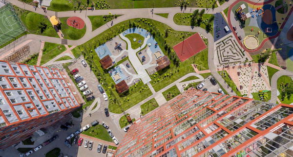 И, что немаловажно, в этом дворе даже взрослым не удастся заскучать: зимой здесь работает один из самых волшебных катков в городе (узнайте, почему волшебный), а летом планируется открытый кинотеатр. А еще — зоны для прогулок, спорта и отдыха, бесплатный Wi-Fi на территории парка. (Забронируйте квартиру со скидкой прямо сейчас.)