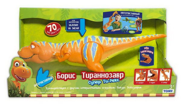 Борис – самый большой и самый многофункциональный из всех динозавров! Уникальная технология SmartTalk позволяет Борису распознавать других интерактивных динозавров и взаимодействовать с ними. Борис рассказывает о себе, разговаривает со своими друзьями, устраивает соревнования среди всех динозавров, громко ревёт и даже соревнуется в рёве с ребенком! Для воспроизведения каждой фразы нужно нажимать на кнопку на его спине. Борис ревёт, если нажать ему на хвост. Он также разевает пасть и рычит, если нажать на большую кнопку на основании хвоста. Борис издает звук аппетитного хруста зубами, если засунуть руку ему прямо в пасть и нажать на язык! Вы услышите звук топота, если будете «топать» динозавром по твердой поверхности. У Бориса подвижные лапы, голова, шея, челюсти, хвост. Функция try-me позволяет прослушать несколько фраз Бориса – он поздоровается и немножко расскажет о себе!