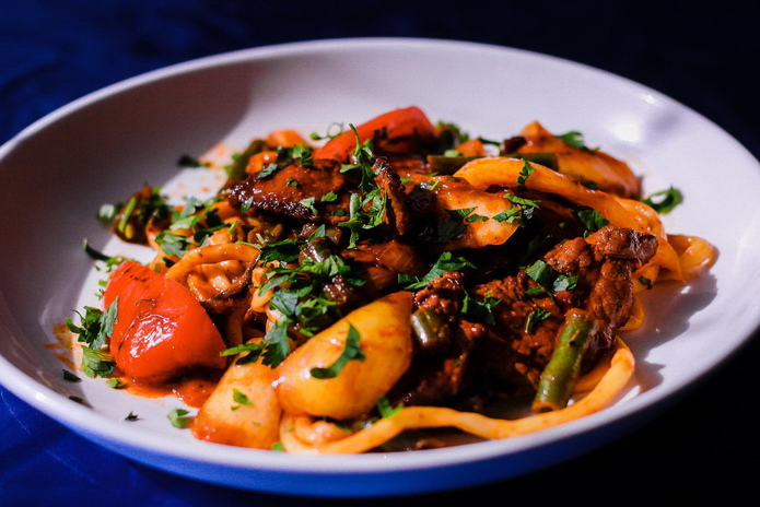 Восточная кухня, лагман, манты, чебуреки, карвинг, ягненок на вертеле, стейки из сёмги и, конечно же, шашлык!