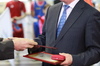 Президент Федерации легкой атлетики Казахстана Павел Новиков наградил нагрудным знаком за вклад в развитие спорта акима области Бердыбека Сапарбаева.