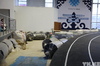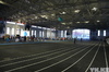 Внутри манежа - прямая дорожка для бега на 60 метров, сектор для прыжка в высоту и прыжка с шестом, круговая беговая дорожка на 200 метров.