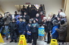 В фойе второго этажа была установлена сцена, где перед началом матча группа исполнила несколько своих композиций и главную песню, которую давно ждали любители хоккея – гимн команды «Казцинк-Торпедо».
