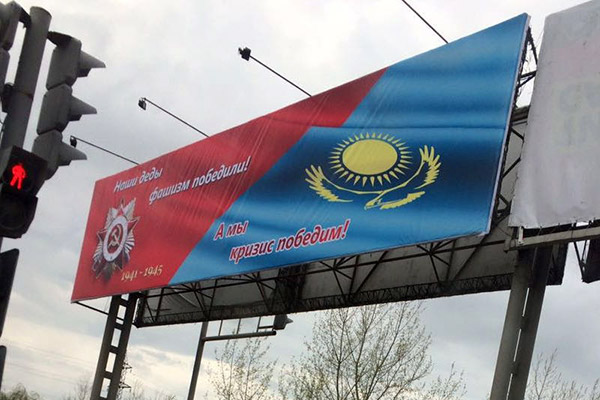 В Семее появились баннеры с надписью «Наши деды фашизм победили! А мы кризис победим!».