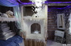 Отдельной темой стал дом Деда Мороза. Украшенный еловыми ветками, лентами и даже настоящими апельсинами снаружи, внутри он по-настоящему сказочный: в одном углу стоят подарки, стол с самоваром, висят запасные шубы Дедушки и Снегурочки. А в другой комнате, занесенной снегом, есть ледяной камин, заиндевевшее зеркало и даже люстра из снежинок.