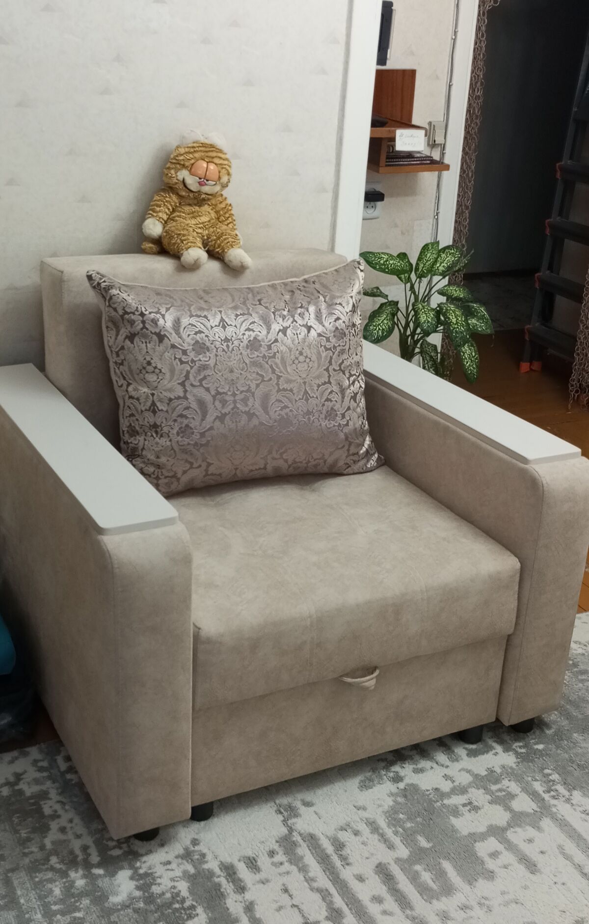Продам кресло-кровать модель "Атлант", раскладное с ящиком для белья и подушкой, в отличном состоянии (не использовалось по назначению ). Производитель: мебельная фабрика "Ника" г.Павлодар.