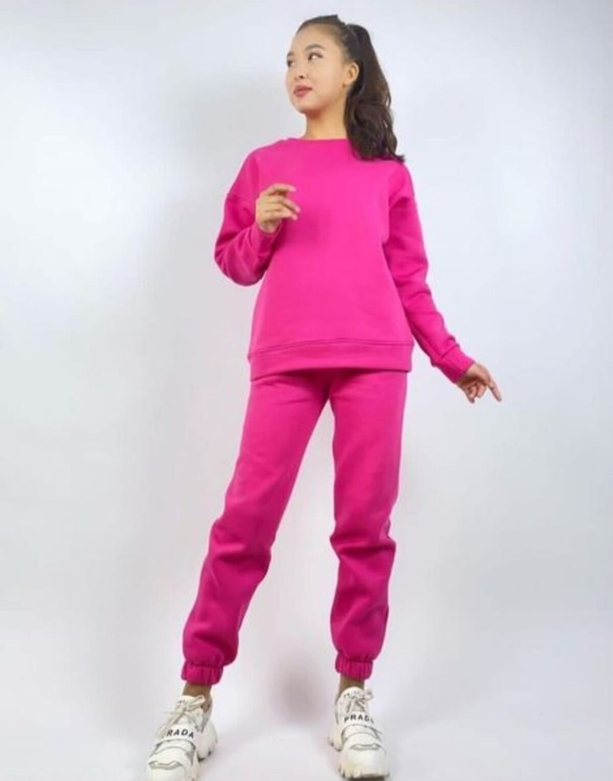 Продам новый костюм с начесом. Цвет ярко розовый. Размер оверсайз (от 44 до 48). Костюм мягкий, теплый и качественный. В наличии несколько штук. Сезон: осень/весна, также можно носить зимой. Торга и обмена нет. Район КШТ10 000 тенге