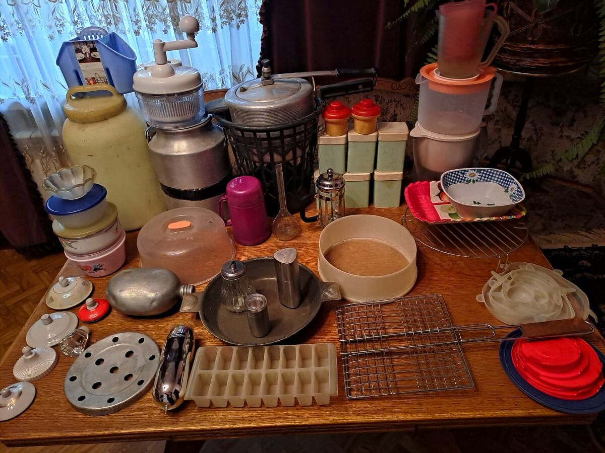 Кухонные принадлежности: сковорода антипригарная советская 3500, ,скороварка советская7500, баночки под специи 6шт 950 и другоедоговорная