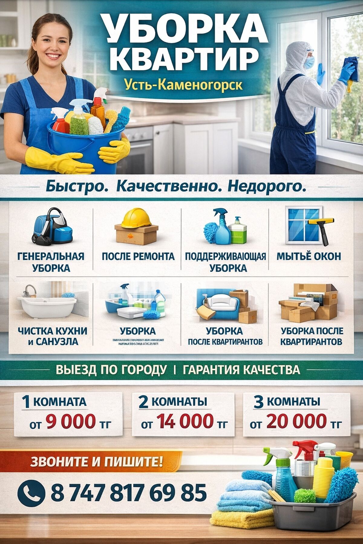 Оказываем услуги по уборке домов, квартир, коммерческих помещений, а также подъездов. Мытье окон,балконов, лоджий. На рынке услуг более 25 лет, все необходимое привозим с собой. Запись заранее. От 8008705410270118 МАРТА 2026 06:02:44 -